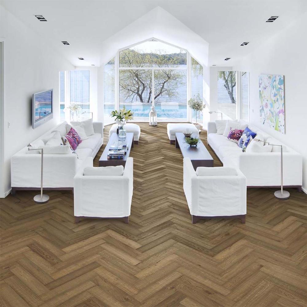 Kährs HERRINGBONE - pokládka do vzoru rybia kosť, 2-vrstvové parkety z prírodného dubu o hrúbke 11 mm.