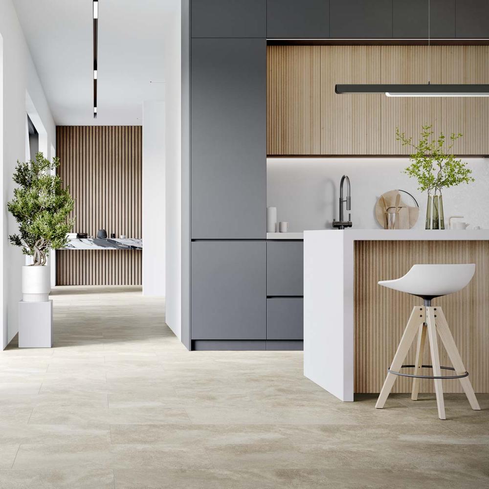 Kompozitná vodoodolná podlaha bez obsahu ftalátov a PVC s integrovanou podložkou. Povrch Supermatt (matný)