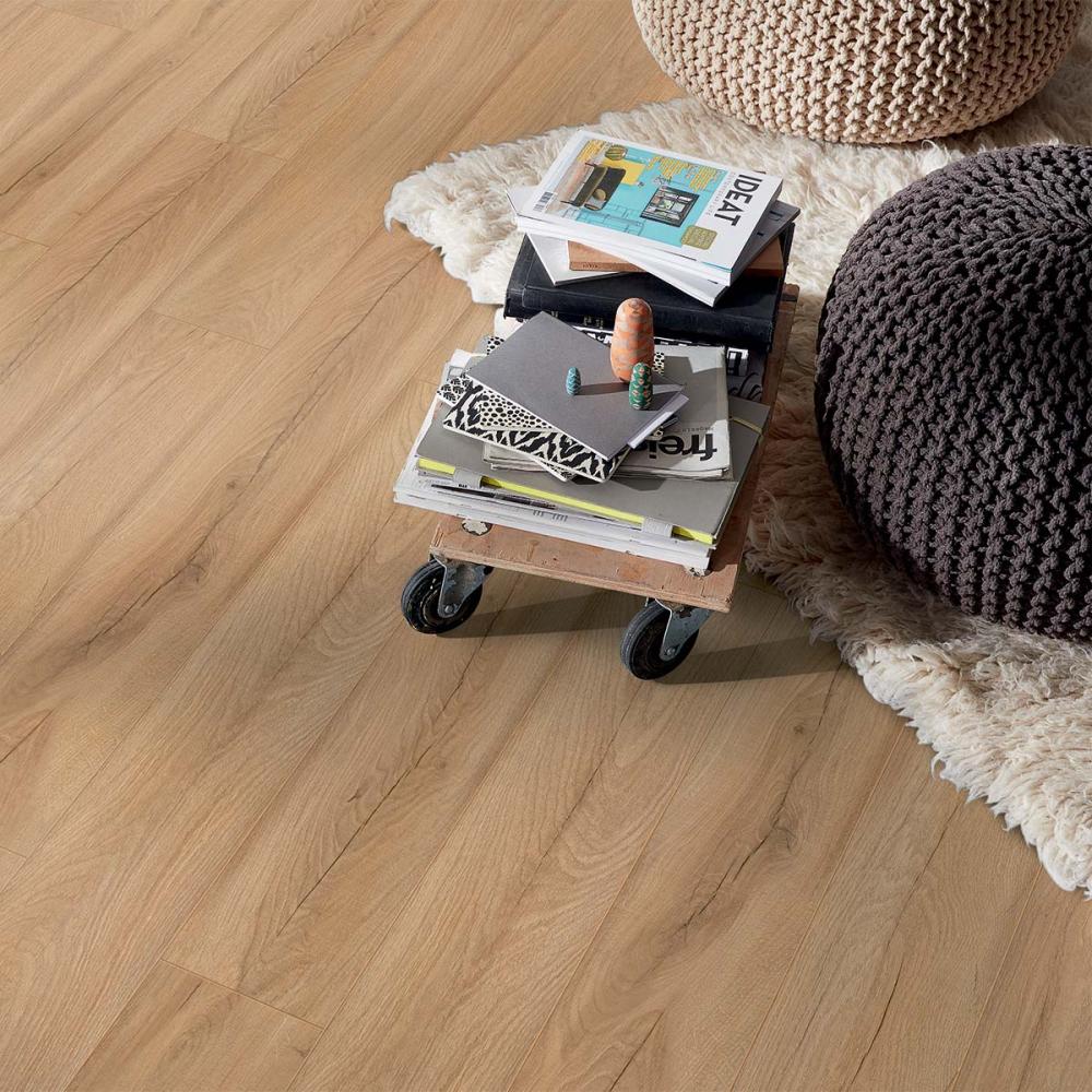 Laminátová podlaha s hrúbkou 8mm , oderuvzdornej triedy AC4/32 s V drážkou po celom obvode lamely a systémom spoja click, čo umožňuje jednoduchú inštaláciu aj domácim kutilom. Laminatová podlaha vhodná do domácnosti a vzhľadom na vysokokvalitnú laminátovú podlahu, môže byť namontovaná hocikde. Laminátová podlaha sa často používa v komerčných priestoroch, v rátane hotelov, reštaurácii, kanceláriách a obchodoch.