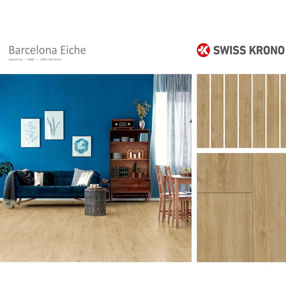 Laminátová podlaha s hrúbkou 8mm , oderuvzdornej triedy AC4/32 s V drážkou po celom obvode lamely a systémom spoja click, čo umožňuje jednoduchú inštaláciu aj domácim kutilom. Laminatová podlaha vhodná do domácnosti a vzhľadom na vysokokvalitnú laminátovú podlahu, môže byť namontovaná hocikde. Laminátová podlaha sa často používa v komerčných priestoroch, v rátane hotelov, reštaurácii, kanceláriách a obchodoch.