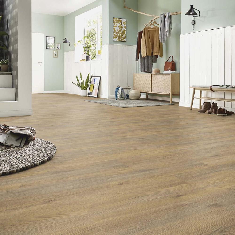 Laminátová podlaha s hrúbkou 8mm , oderuvzdornej triedy AC4/32 s V drážkou po celom obvode lamely a systémom spoja click, čo umožňuje jednoduchú inštaláciu aj domácim kutilom. Laminatová podlaha vhodná do domácnosti a vzhľadom na vysokokvalitnú laminátovú podlahu, môže byť namontovaná hocikde. Laminátová podlaha sa často používa v komerčných priestoroch, v rátane hotelov, reštaurácii, kanceláriách a obchodoch.