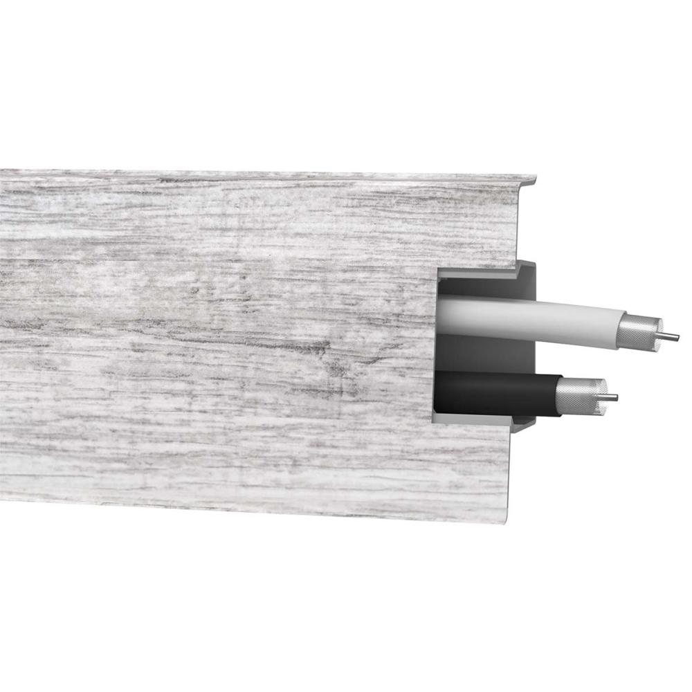 Soklová lišta k stene pre inštaláciu káblov, dokonale priliehajúca k stenám a podlahe vďaka zvláštnym gumičkám na hornom a dolnom okraji, lišta vyrovnáva všetky nerovnosti stien a podlahy. Rýchla a jednoduchá montáž bez nutnosti využívať príchytky. Po pripevnení umožňuje vedenie niekoľkých káblov bez nutnosti demontáže.